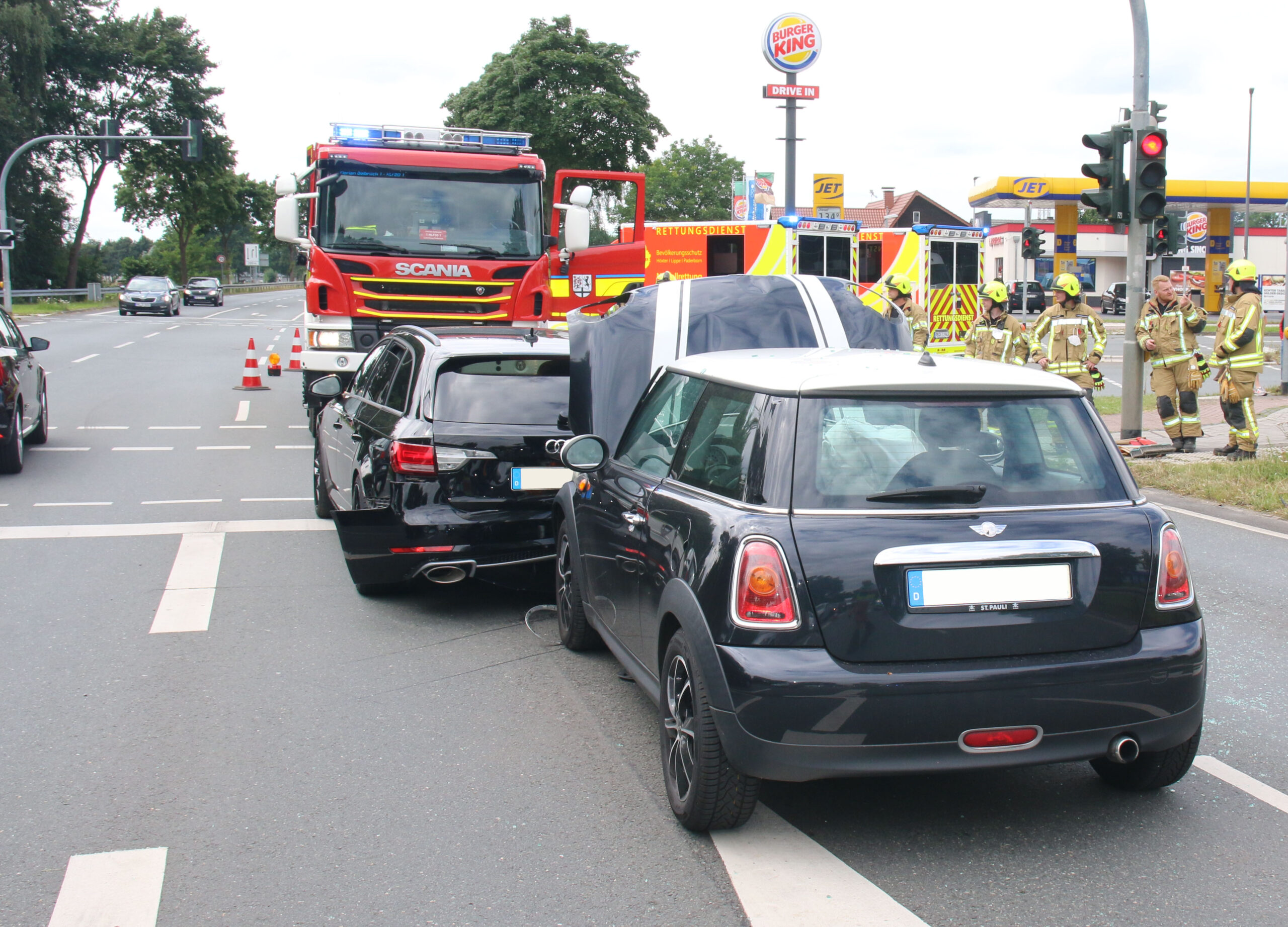 Das Erstangriffsfahrzeug aus Delbrück wurde direkt zu Beginn des Einsatzes aus diesem abgezogen, da sich im Kreuzungsbereich B64 und Bokerstraße ein Auffahrunfall mit 2 beteiligten PKW ereignet hatte. Die Fahrzeugbesatzung sicherte die Einsatzstelle und unterstützte den Rettungsdienst. 3 Personen wurde leicht verletzt.