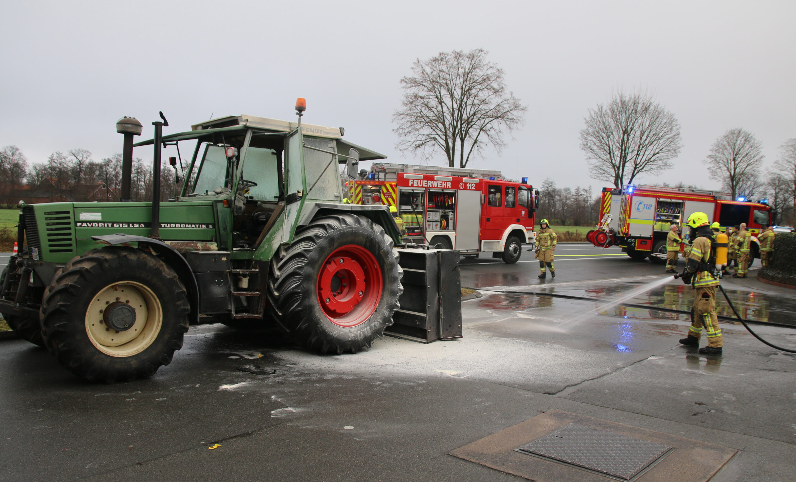 Aufgrund der Lage an der Tankstelle wurden der Löschzug Westenholz sowie Einsatzunterstützungen der Löschzüge Delbrück und Lippling alarmiert. Der 31-jährige Fahrer des Treckers, selbst Feuerwehrmann, reagierte schnell und führte einen ersten Löschangriff mit Hilfe von 2 Feuerlöschern durch. Damit hielt er das Feuer bis zum Eintreffen der ersten Kräfte klein und minimierte so den entstandenen Schaden.